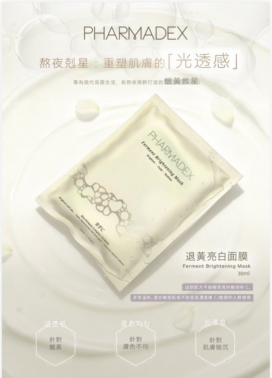 熬夜不怕黃!PHARMADEX退黃亮白面膜,讓肌膚像剛出生般透亮水嫩,重拾光采神采!